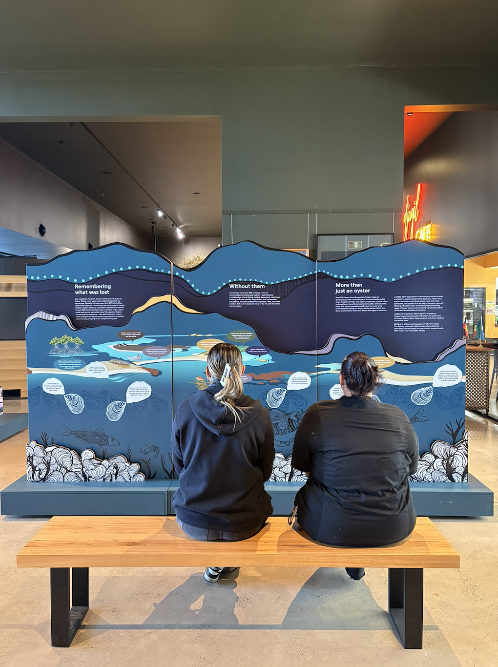 Developed by the Australian National Maritime Museum in collaboration with the NSW Department of Primary Industries, Bidhiinja explores the forgotten history of oyster reefs and the critical role they once played in coastal environments and communities. The exhibition draws together science, history and cultural knowledge to tell the story of these remarkable ecosystems and why their restoration matters.