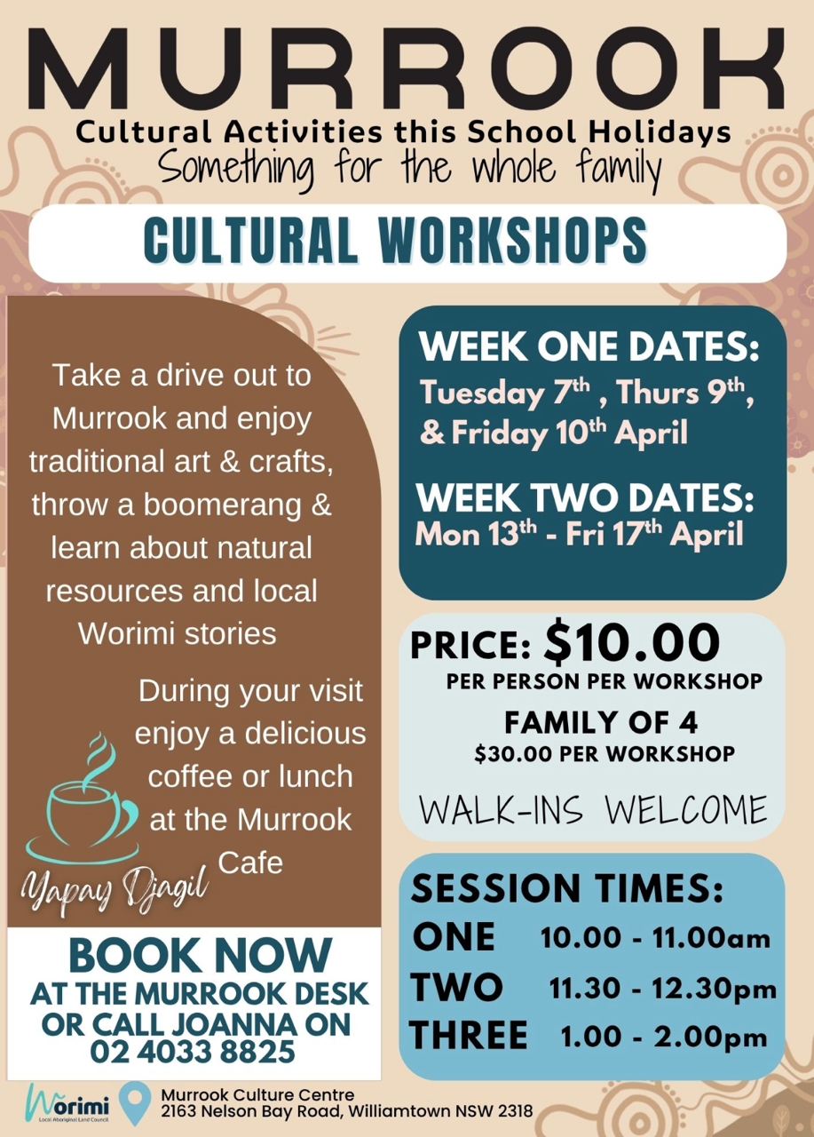 You can book your spot at the Murrook desk or by calling ahead, or simply arrive on the day. For bookings and more information, contact Joanna on 02 4033 8825.
